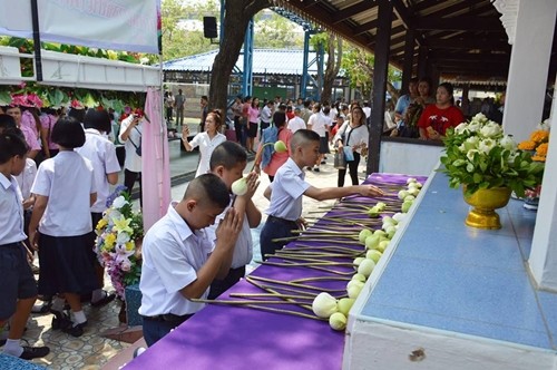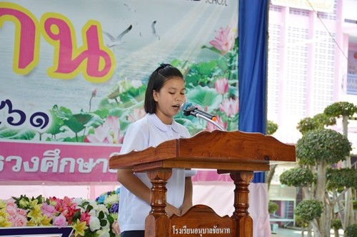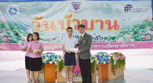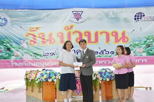 วันพฤหัสบดี ที่ 29 มีนาคม 2561 โรงเรียนอนุบาลชัยนาทจัดพิธีวันบัวบาน มอบหลักฐานทางการศึกษาให้กับนักเรียนชั้นประถมศึกษาปีที่ 6 ที่จบในปีการศึกษา 2560 โดยจัดให้มีพิธีสงฆ์ พิธีมอบทุนการศึกษาให้กับนักเรียนที่ทำคะแนน O-NET เต็ม 100 คะแนน นักเรียนที่มีผลคะแนนรวม O-NET สูงสุด นักเรียนที่ทำคะแนน O-NET สูงสุดของเขตพื้นที่วิชาภาษาไทย และนักเรียนที่สอบเข้าเรียนต่อในระดับชั้นมัธยมศึกษาปีที่ 1 ได้ห้องเรียนพิเศษในโรงเรียนแข่งขันสูง และมอบหลักฐานทางการศึกษาให้กับนักเรียนทุกคน ตัวแทนนักเรียนแต่ละห้องเรียนมอบพวงมาลัยดอกมะลิให้กับผู้บริหาร ตัวแทนนักเรียนกล่าวขอบคุณ และกล่าวอำลาสถาบัน 3 ภาษา นักเรียนนำพวงมาลัยดอกมะลิกราบแสดงความกตัญญูต่อผู้ปกครอง สุดท้ายนักเรียนนำดอกบัวไปขอพรและกราบลาพระพุทธรูปประจำโรงเรียน |